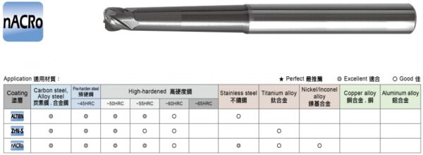 材料:〜HRC60 /鐵材/素碳鋼/鑄鐵/模具鋼/合金鋼/工具鋼/熱處理鋼/焊補鋼料 用途:〜HRC60